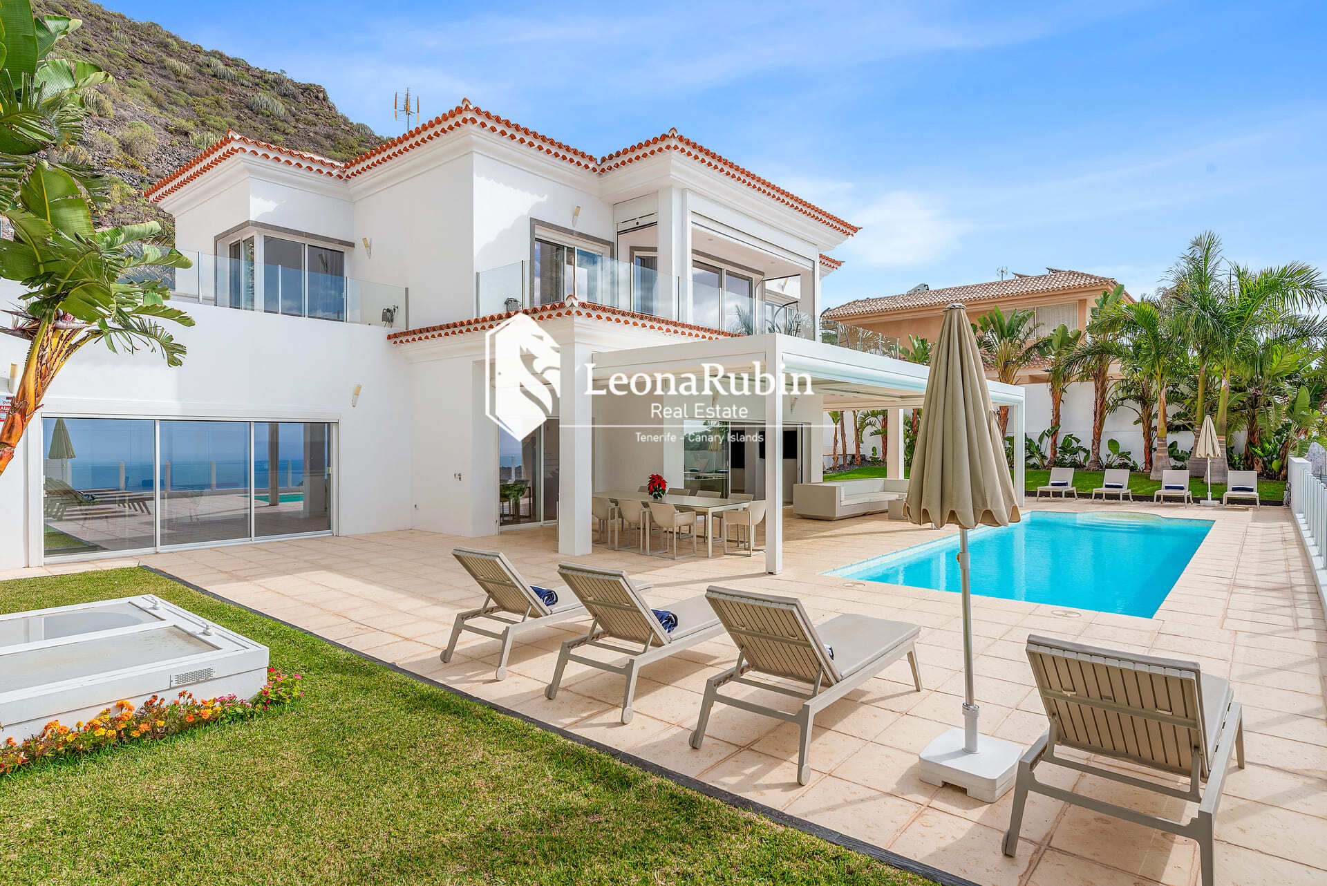 AQUA LUNA VILLA | COSTA ADEJE2.395.000,00 € 4 Bedrooms4 Bathrooms400 m² Living Space810 m² Built Area759 m² Plot AreaEnergy certificate available: Yes