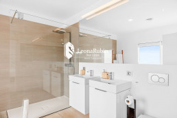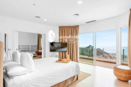 The master bedroom with en suite bathroom including a freestanding bathtub and a dressing room which is currently used as a bedroom are located on the upper floor. Further two further guest bedrooms with en-suite bathrooms are also on this floor. All bedrooms have a private terrace.