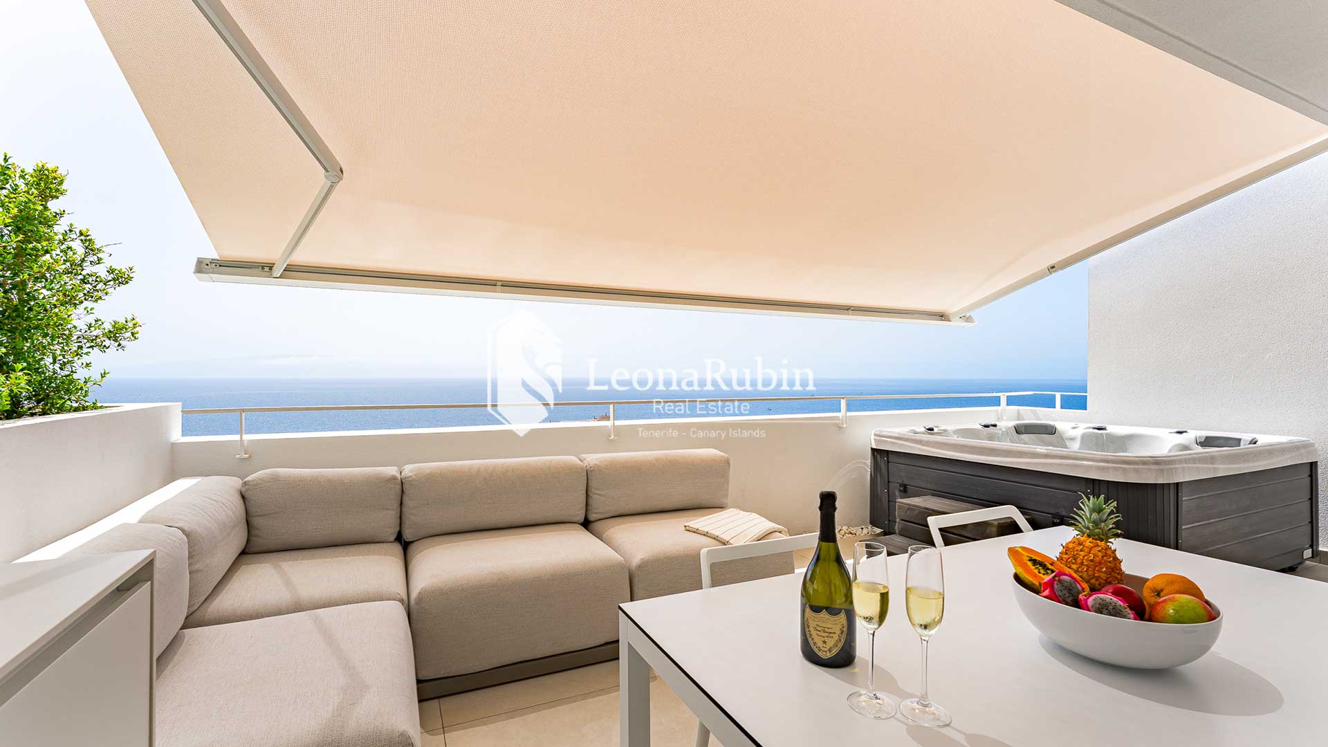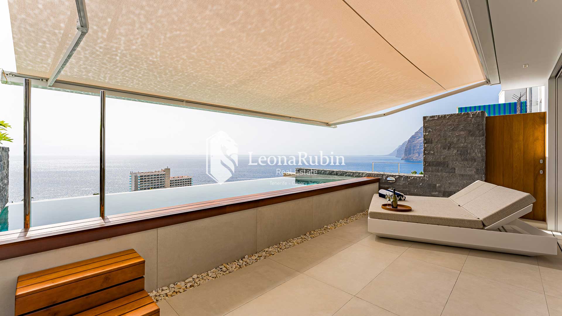 This penthouse has its own heated infinity pool, which is more than 6 meters long. From the property you can enjoy stunning views of the Atlantic Ocean, the neighbouring islands of La Gomera and La Palma as well as the bay of Los Gigantes. From here the legendary basaltic crags of the same name rise 500 metres into the blue sky of Macaronesia. This setting sets the scene every evening for the most spectacular sunset in the world.