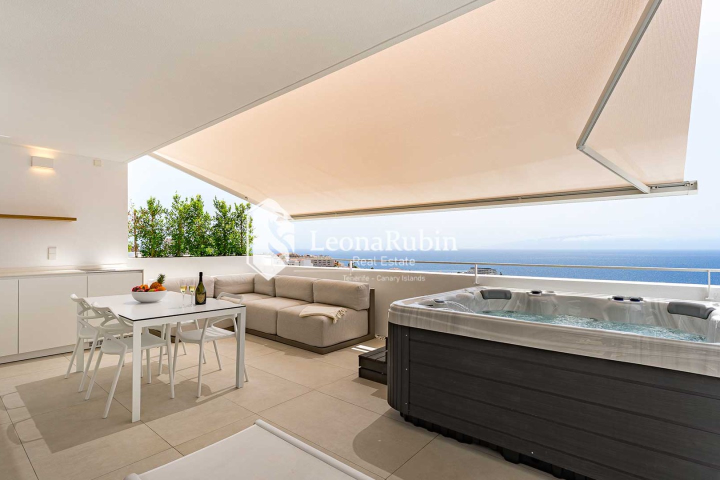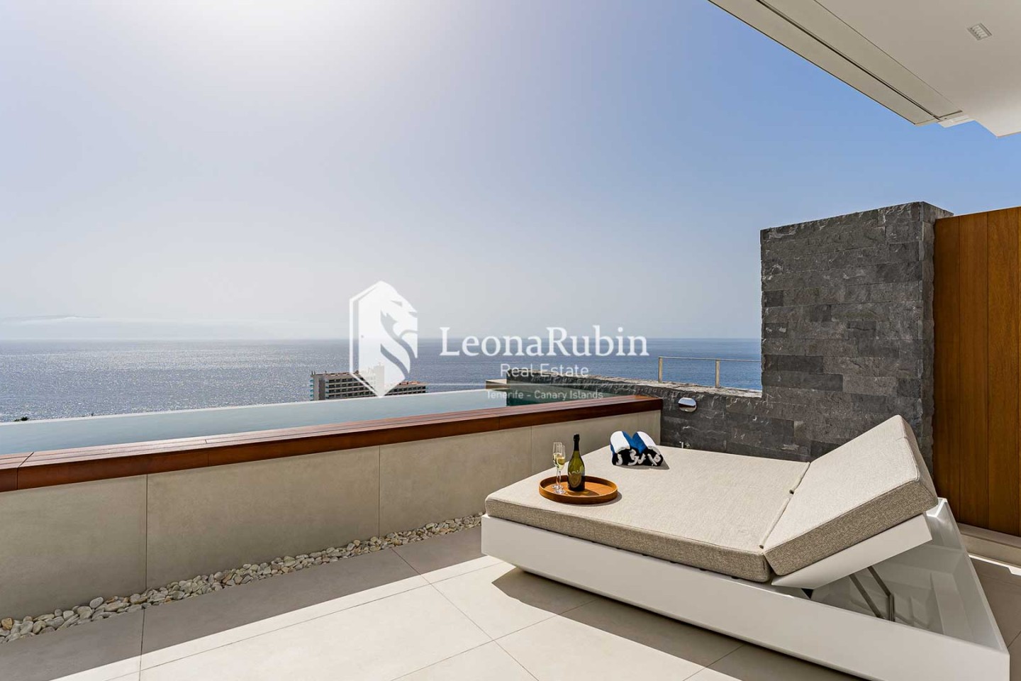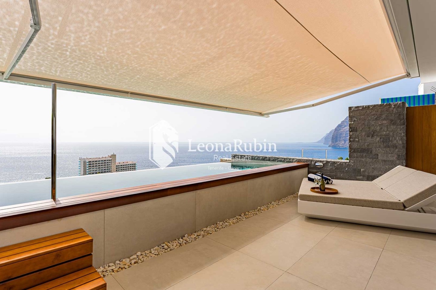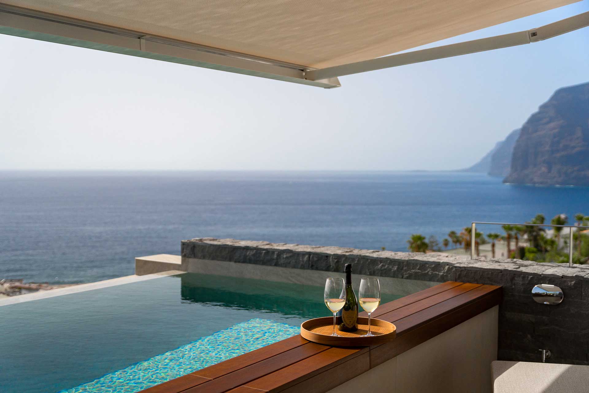 Este ático tiene su propia piscina infinity de más de 6 metros de largo y climatizada. Desde el apartamento se puede disfrutar de las más maravillosas vistas del Océano Atlántico, de las islas vecinas de La Gomera y La Palma, así como de la bahía de Los Gigantes, desde la que los legendarios peñascos basálticos del mismo nombre se elevan 500 metros hacia el cielo azul de la Macaronesia. Este entorno prepara el escenario cada noche para la puesta de sol más espectacular del mundo.