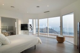 Das Hauptschlafzimmer mit Bad en Suite, inklusive einer freistehenden Badewanne, sowie einem Ankeidezimmer, das derzeit auch als Schlafzimmer genutzt wird, befinden sich auf der oberen Etage. Zwei weitere Gästeschlafzimmer mit Bädern en Suite liegen ebenfalls auf dieser Etage. Alle Schlafzimmer verfügen über eine private Terrasse.