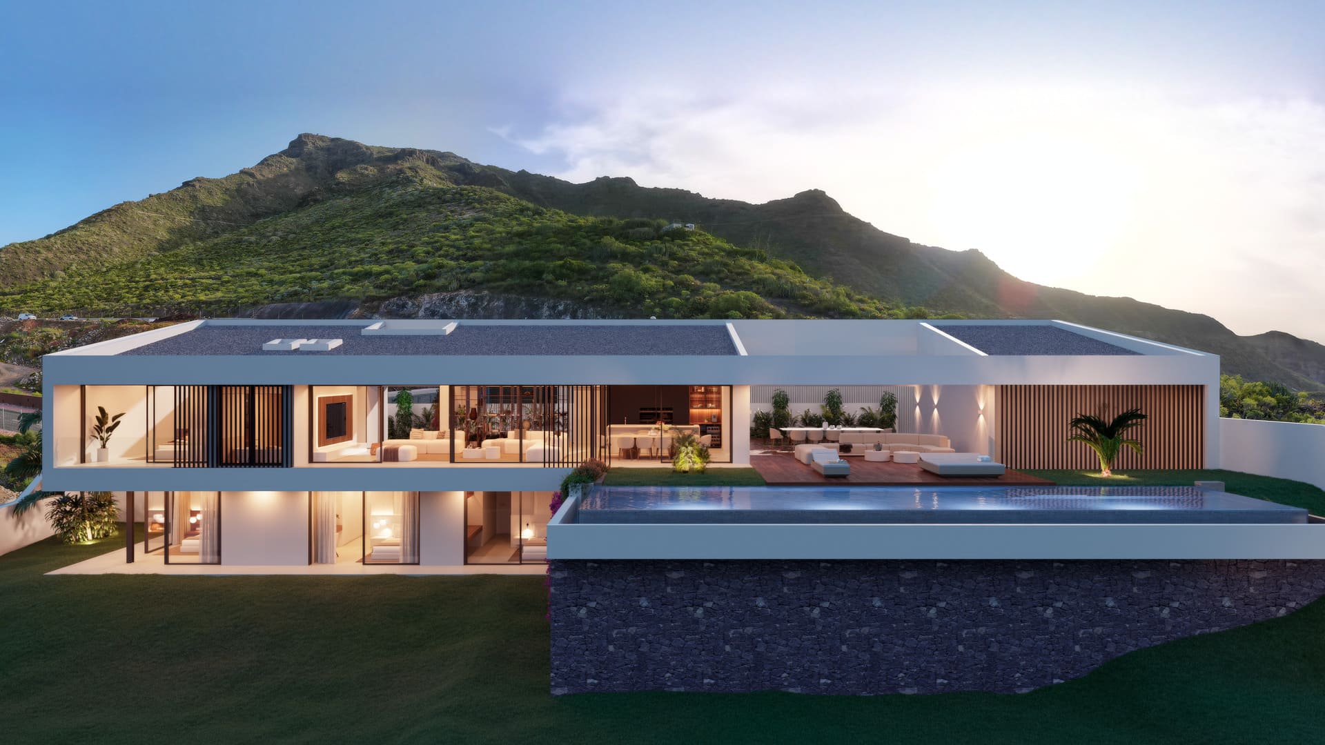 Die Villa AQUAsilence ist eine besondere Villa. Durch ihre besondere Architektur ist sie ein fabelhaftes Wechselspiel von Innen- und Außenbereichen. Durch die intelligente und sanfte Raumaufteilung unter Einbeziehung der natürlicher Flächen transportiert AQUAsilence perfekt das südländische Lebensgefühl in Costa Adeje.
