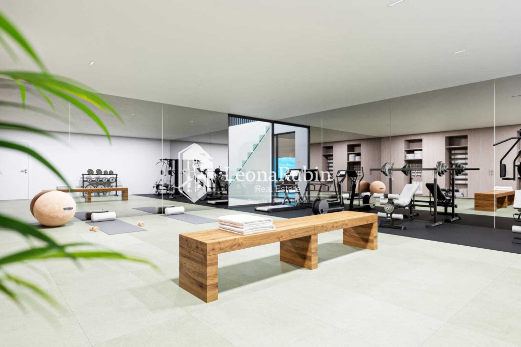 Der offene Wohn- und Essbereich mit einer ebenfalls offenen, großen Küche bildet das Zentrum der oberen Etage. An diesen schließt sich an einer Seite eine mit einer Pergola überdachte große Außenfläche an. Diese kann als Ess- oder Chill-out-Bereich genutzt werden. Auf der anderen Seite des Wohnbereiches erfolgt der Zugang zu luxuriösen Hauptschlafzimmer mit Bad en Suite und toller Ankleide. In einem separaten Teil der Etage befinden sich die Garage für zwei Autos, ein Gästebad und ein Hauswirtschaftsraum.