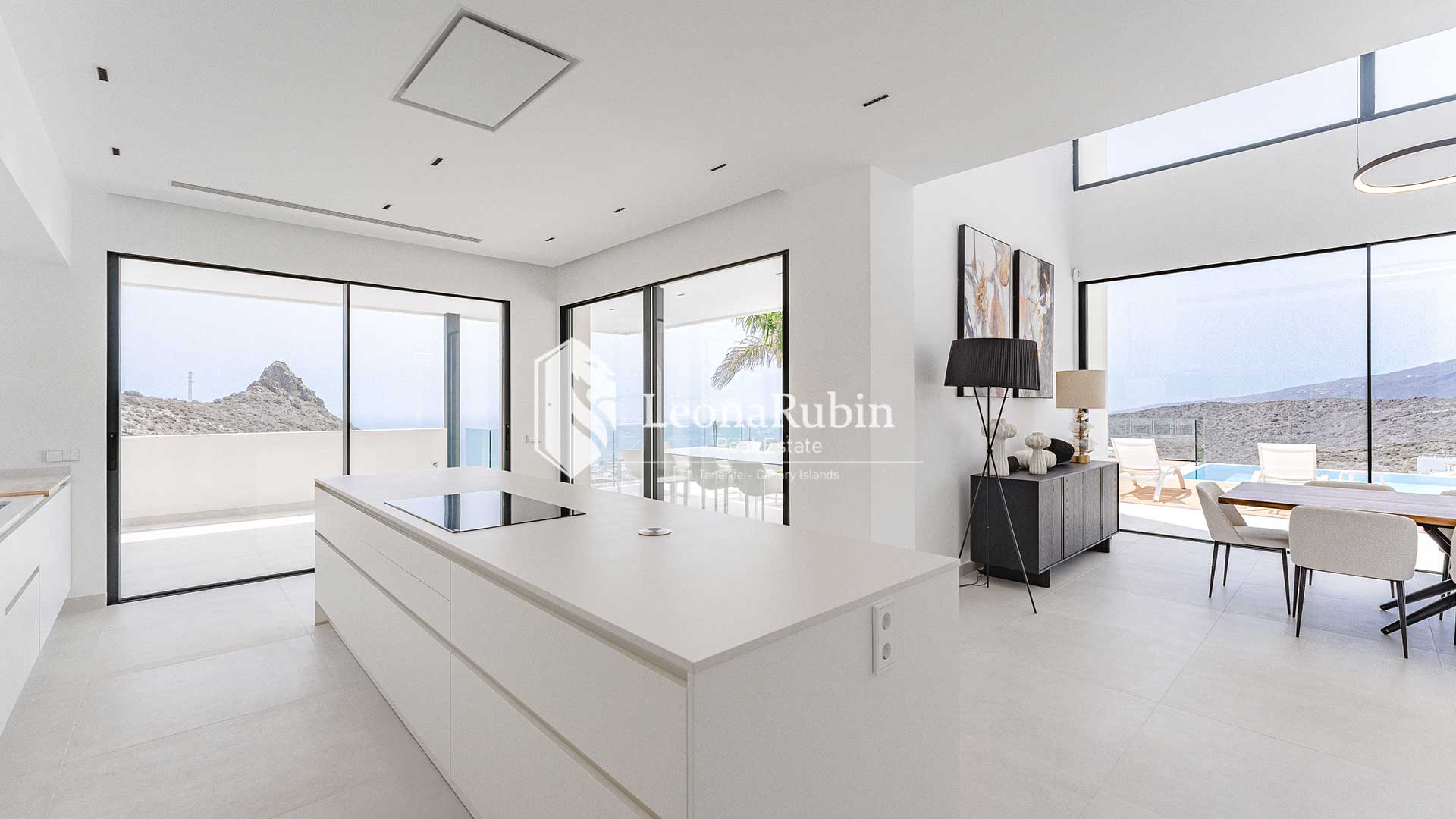 Am Fuße des heiligsten Berges der alten Kanarer, dem Roque del Conde, dem mystischen Sternenhimmel schon recht nahe, erstrahlt die Villa AQUAstar gebaut. Sie präsentiert sich als modern-funktionales Domizil, das perfekte Übergänge von Außen- und Innenbereich schafft und ein südländisches Wohngefühl transportiert. Es ergeben sich die fantastischsten Ausblicke auf das Meer mit den Nachbarinseln.