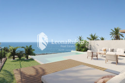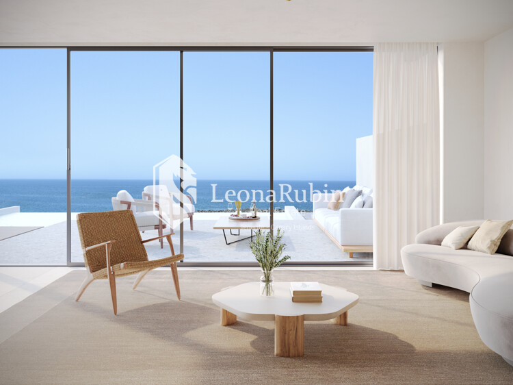 Daran schließt sich eine großzügige Terrasse an, die ideal zum Entspannen und Sonnen geeignet ist und über einen privaten, beheizten Infinity-Pool verfügt. Die Aussicht auf das Meer macht diesen Außenbereich zu einem besonderen Highlight. Zum Penthouse gehört jeweils eine geräumige private Garage mit Platz für zwei Fahrzeuge sowie ein separater Abstellraum, der sich gut für Gepäck oder persönliche Gegenstände eignet. Die gesamte Wohnfläche befindet sich auf einer Ebene, was ein bequemes und barrierefreies Wohnen ermöglicht und die Immobilien auch für Personen mit eingeschränkter Mobilität interessant macht. Je nach Lage innerhalb der Anlage können die Grundrisse, die Position von Garage und Abstellraum, die Gartengestaltung oder die Poolgröße leicht variieren.
