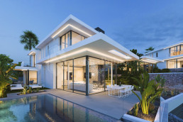 Die klaren und minimalistischen Linien, offenen Flächen und neutralen Farben verleihen diesen Villen eine elegante und leicht erkennbare Ästhetik.